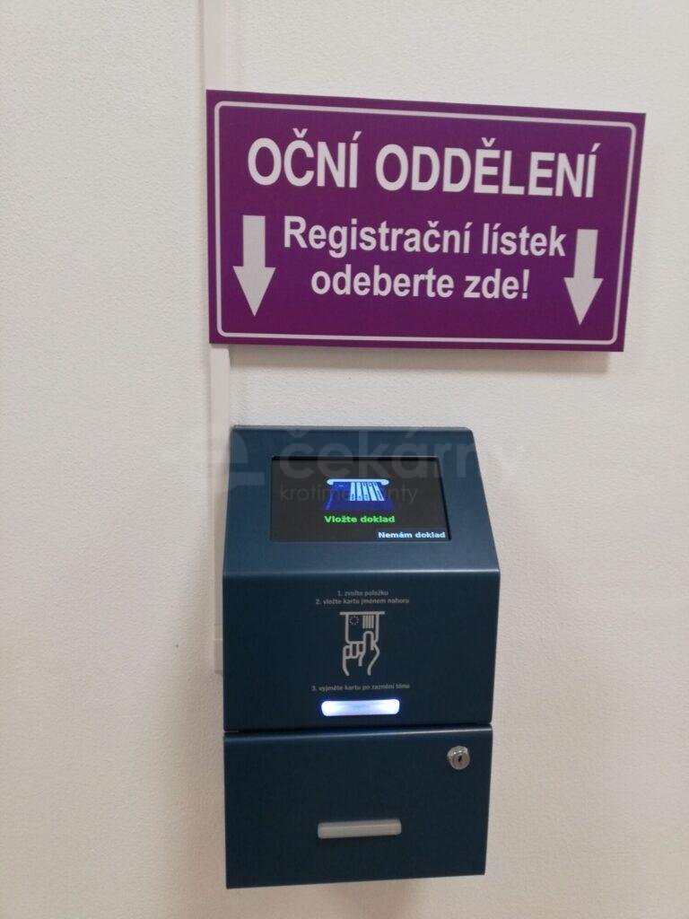 Tento registrační kiosek umožňuje pacientům jednoduchou registraci kartou pojišťovny a poskytuje lékaři přehledný čekárnový systém.